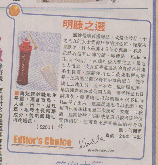 香港本地紅星曾公開推薦其睫毛增長精華